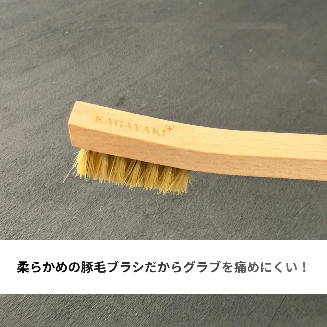 - 毛先が長めなので、グラブを傷つけにくい構造に!
